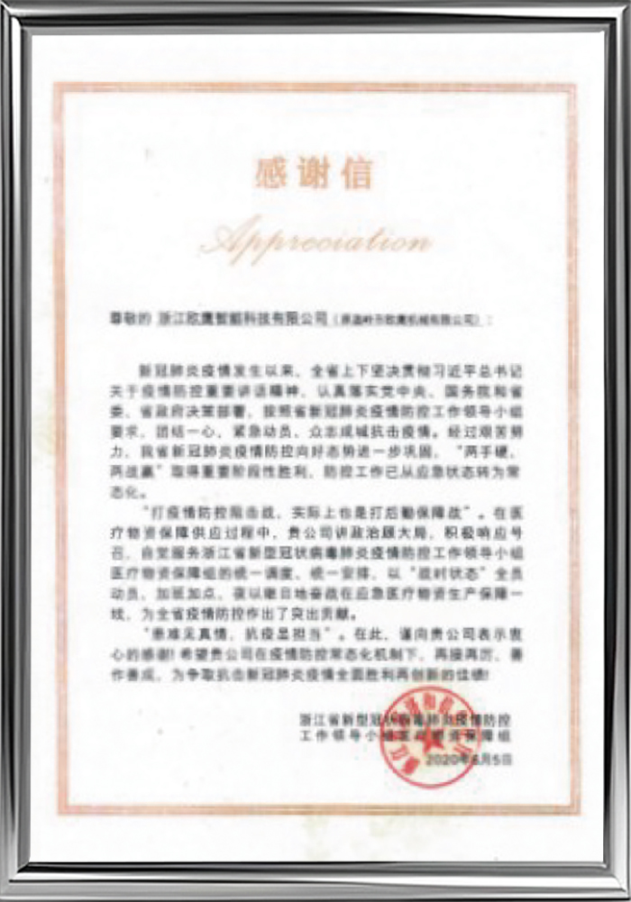 浙江欧鹰智能科技有限公司,是一家集研发、生产、销售、服务为一体的服装机械生产企业,专业生产自主品牌“OUYING”热风缝口密封机、防护服专用压胶机、热压机、无缝内衣机、超声波粘合机、及热熔胶带与胶膜。产品广泛应用于:医疗防护服、防护服、冲锋衣、滑雪服、登山服、部队野战服、羽绒服、雨衣、车罩、运动服休闲服、军营帐篷、防水鞋、防水袋、车船罩、无缝内衣、泳衣、运动衫等功能性服装和产品密封加工缝合。公司经过了二十多年的发展,已经具备雄厚的研发和创新能力,凝聚了一批优秀的技术、管理、营销、服务人才队伍。公司一贯奉行“精湛的技术、完美品质”的经营理念,先后与亚太及中东多国客户建立长期稳定的合作伙伴关系,形成了广泛的国际销售网络。面对新的国际合作潮流,公司将一如既往打造企业的核心竞争力,竭诚为广大客户提供优质的产品及服务,力争成为一家立足于国际市场的现代化企业。